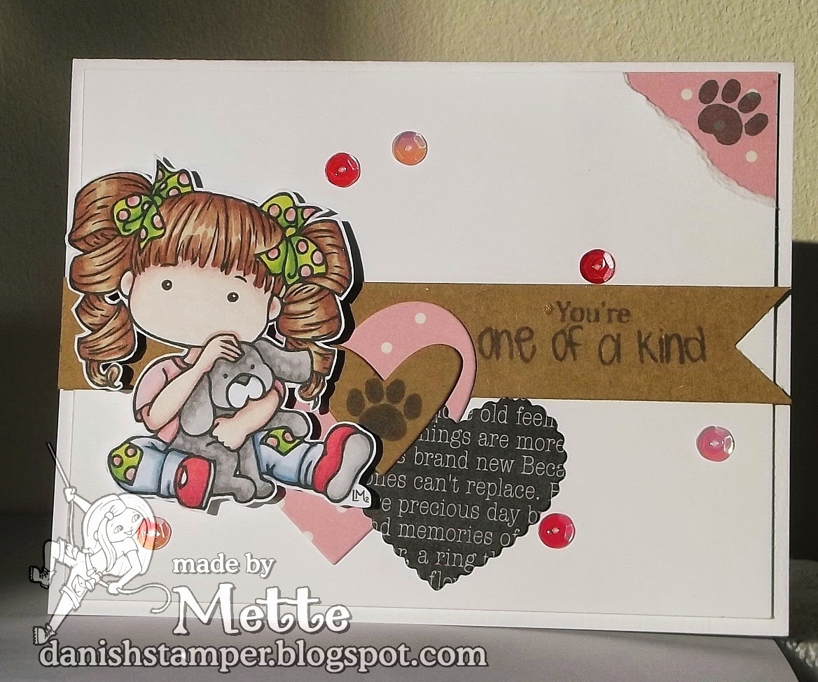 Stamps: pdp Katie (Little Miss Muffet Stamps), Fur-ever Stamp Set (The Greeting Farm) - Papers: AC card-stock. MiC Blending card, kraft, scraps - Dies: Hearts-a-plenty (MFT) - Inks: Tuxedo Black (Memento), Charcoal (Hero Arts) - Sequins - Promarkers